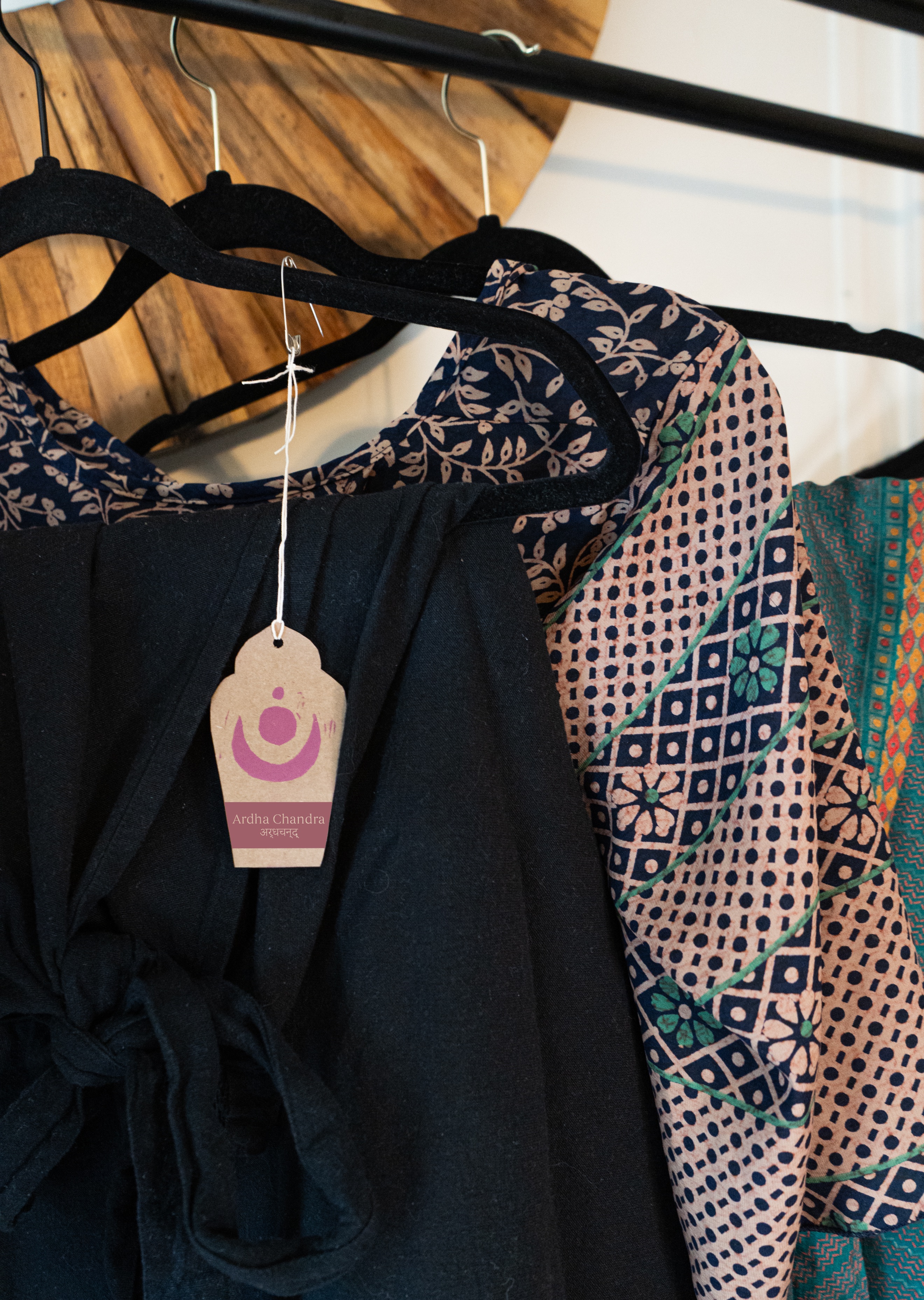 Ardha Chandra अर्धचन्द् is an Indian-inspired clothing brand based in who promotes sustainable, ethical, and handmade fashion. The tie and wrap clothing we design in-house is brought to life by Indian artisans who have honed their textile craftsmanship to perfection.
