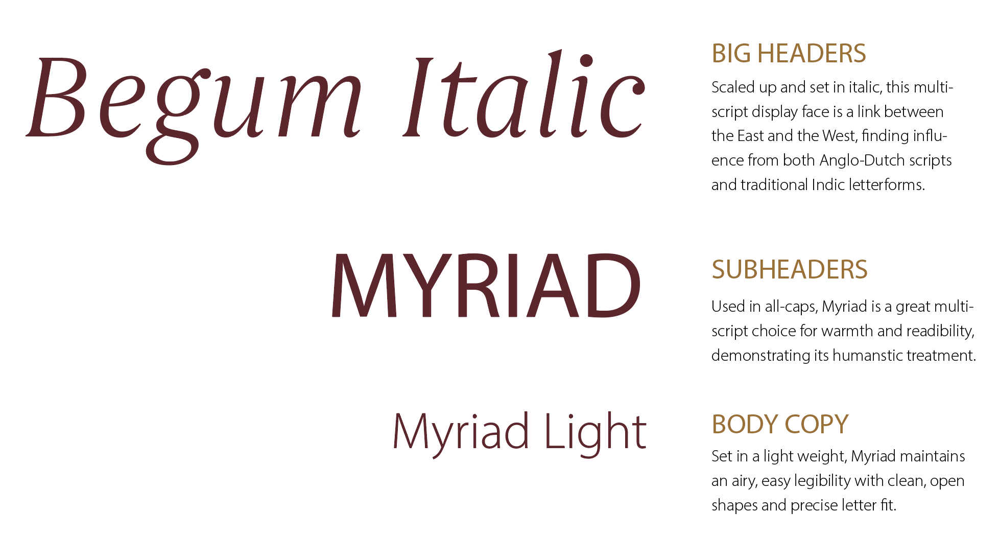 Utilizing a simple pairing of serif Begum and sans-serif Myriad Devanagari, as well as the shop name paired with the smaller Sanskrit translation, this logotype communicates Ardha Chandra